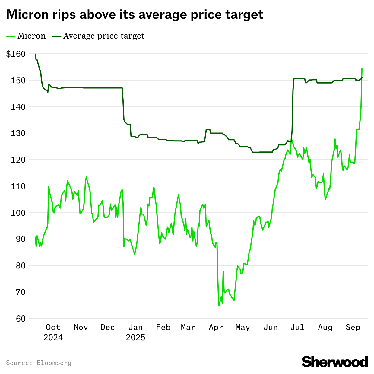 Micron jumped 7.5% after Citi boosted its price target to $175 from $150.