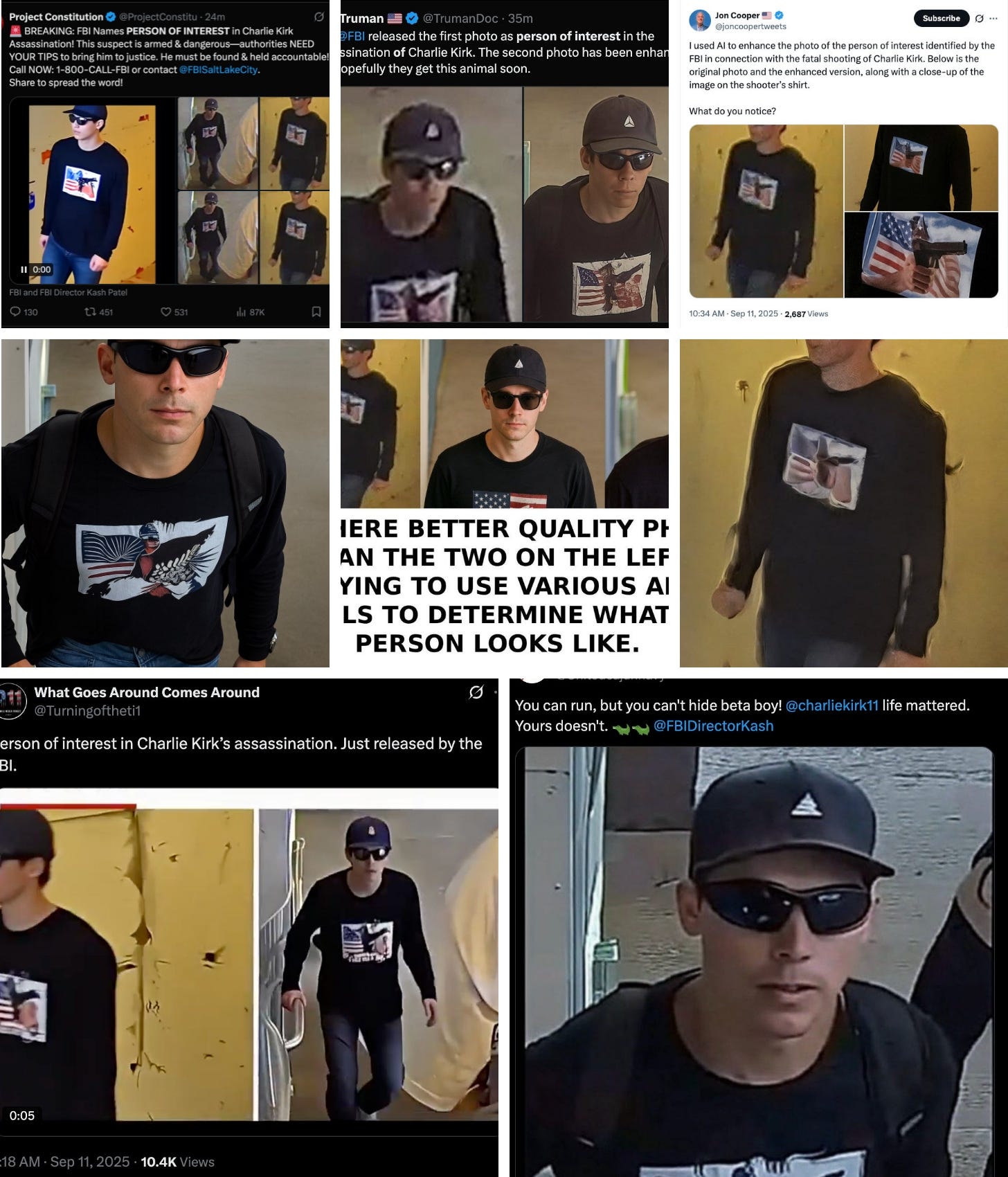 Then, on Thursday, when the FBI released images of the suspected shooter, social media users took to the platform not to pool clues, but to ‘enhance’ the image using AI. I’ve assembled some of the examples below; there were also video renderings that depicted the shooter walking up the stairs. ![]() This is, of course, once again, worse than useless. Some of these users may, like most of the Boston marathon bomb sleuths, just be trying to help, but they’re assuming that ChatGPT is going to work like the “AI” they see on TV procedurals, and “enhance” or “clean up” a photo, when it is of course assembling a new image from scratch, based on the pixels put into its system. (Gizmodo’s Matt Novak has a good and more thorough explainer of why this practice is so absurd.) An AI image generation system, cannot, for instance, give us any actual information about what the suspect looks like without sunglasses on. Now, this was somewhat fringe stuff, though there were big accounts participating, but the practice was also often shouted down. Still, there were at least a few cases where users were taking a screenshot from one of the AI image generators and using it to draw conclusions, and you can see how in the future this all might become more problematic. And I think it’s worth noting that the previously bad practice of working socially to find and compile evidence is giving way to the new bad practice of generating your own evidence, with a new tech product at hand. The combined effect, and the omnipresence of AI on the platforms, leads users to expect a breakdown in information quality—to the point that Trump’s address on Kirk’s death, which was recorded and uploaded straight to social media, was widely criticized for potentially being AI-generated. In fact, it probably was either just hastily cut together, or employed an AI editing tool. But the Trump admin clearly loves AI and making AI-generated media, it would ultimately be unsurprising if it used ChatGPT to shit out a video statement. The White House X feed itself, after all, is another artifact highlighting the decay, and increasing anti-sociality, of social media. The social media balkanization and the vilification of BlueSky is completeShortly after Kirk’s killing, a blogger in Musk’s orbit, Tim Urban wrote that “Every post on Bluesky is celebrating the assassination. Such unbelievably sick people.” Musk quoted the post, and insisted “they are celebrating cold-blooded murder.” The evidence supplied was a few tiny accounts and dumb posts with one to zero likes apiece. Another prominent conservative commentator replied to AOC’s call for nonviolence by saying, “Your followers are celebrating Charlie Kirk's assassination all over Bluesky. Hundreds of thousands of bloodthirsty Democrats, delighted by the political violence that you've incited.” The Atlantic staff writer Thomas Chatterton Williams called this purported celebration of violence “unconscionable.” Of course, it wasn’t really happening. Not on any scale that was materially different from what was taking place on X or elsewhere, anyway. I spent a considerable amount of the week on BlueSky, too, watching the trending topics, searching keywords, doomscrolling, etc. (I also have dummy accounts on both platforms not algorithmically tailored to my typical browsing habits.) I can say with confidence that the reaction was similar on both platforms—the vast majority of posts ranged from ‘violence is never the answer’ to ‘nothing good will come from this’ to highlighting pointed quotes of Kirk’s about gun violence. You could find a few on both platforms along the lines of “he deserved it” but they were the obvious and clear minority. It didn’t matter. To many, “BlueSky” has become an ideological construct of its own, the place where “the intolerant left” has allegedly gone to live in its bubble. (This assumption seems flawed to me, as, based on a purely anecdotal taxonomy, it seems it’s mostly progressives and left-liberals on BlueSky, and that a lot of the more traditionally Marxist left has stayed on X, though there is certainly plenty of overlap.) That construct is now being used, in part, to justify the project outlined above by all those big rightwing accounts on X—all those “vile” posters on BlueSky ostensibly celebrating Kirk’s death are the reason that LibsOfTikTok, Matt Walsh, Elon Musk, and whoever else, must now go “to war.” The othering of the users of an entire social media platform is an especially useful rhetorical move, because X users don’t even have to leave to leave the platform to see if what the vilifiers are saying is true, and they most likely won’t. For centrists like Chatterton, meanwhile, it’s useful as a means of elevating one’s sense of reasonableness and pragmatism, over the hordes gnashing their teeth, again, just off-platform. The biggest and most powerful accounts on X were never going to listen to the input of the accounts now posting on BlueSky, no matter where they were doing said posting. What matters more than anything—certainly more than the persuasive capacity of clever users—is that X is owned by a person with a material and political interest in highlighting certain views (BlueSky, after all, is also an X competitor), and cultivating his platform in a specific way, accordingly. Posts are peripheral; what matters is power. It’s always been thus, now it’s unambiguous. You're currently a free subscriber to Blood in the Machine. For the full experience, upgrade your subscription. |