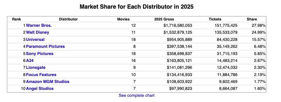 One political question is whether Hollywood executives, agents, actors, writers, unions, and cameramen will speak out in any coherent way against consolidation. So far, over the past 30 years, no one really has, though during the strikes in 2023 the conversations heated up somewhat. A different political question is whether the equally moribund Democratic establishment will notice that this merger is happening, and seek to stop it. They were angry at the cancelation of Stephen Colbert’s show, and would not particularly like CNN being under Trump’s thumb. On the other hand, opposing this deal would mean doing something, and Democrats hate that. So that’s the politics. Now let’s talk law. While discussing merger law seems kind of adorable now that we’re in a land of lawlessness, there’s a reason to ask whether this deal is legal. And that is, state attorneys general have the ability to challenge it, even if Trump’s Antitrust chief Gail Slater, a deeply meek official after being disciplined by MAGA corporate lobbyists, will almost certainly not. Will Democratic state officials? Maybe. I asked former DOJ antitrust attorney Hetal Doshi, who is running for the Colorado attorney general office, which has jurisdiction here. These kinds of “modern media companies,” she said “now wield power in nearly every aspect of public life: journalism, movies, television, and beyond; That is why any multibillion dollar merger that further consolidates power in this industry should be carefully scrutinized.” State enforcers, she noted, “have both the authority and responsibility to investigate.” Doshi is a careful lawyer, so these words carry significance. In other words, enforcers are keeping a close eye on this one. Is there a case? Well first let’s look at market share numbers, which suggest this merger would be problematic. There are five major studios today - Disney, Universal, Sony Pictures, Paramount Pictures, and Warner Bros - and this deal would combine two of them, bringing a market of five players who compete head-to-head to four. Just a few years ago, there were six, but after Disney bought Fox, it shrank to five. In 2025 theatrical releases, so far Warner is number one and Paramount is number four. If you look at the 2023 merger guidelines, which have been recognized as authoritative by more than a dozen judges, you can see right off the bat that this deal can be challenged. I count five different guidelines that it could violate. It’s a merger in a highly concentrated industry (guideline one), it would eliminate head-to-head competition (guideline two), it’s part of a consolidating trend (guideline seven), it is part of a series of acquisitions in a market (guideline eight), and it combines buyers and could lessen competition for “Workers, Creators, Suppliers, or Other Providers” (guideline ten). And that’s not even getting to other parts of the companies, like the fact that they both have streaming services. So what would the case look like? In most merger cases, people assume that the merging parties would be able to raise prices to consumers and lower output. And certainly, the number of movies in theaters have collapsed as the studios consolidated. But in this case, a key argument will also be that these companies could lower compensation to suppliers, aka writers, actors, cameramen, and so forth. Has such a merger challenge ever happened and succeeded? In fact, yes. Going at Paramount-Warner would be quite similar to the Penguin-Simon & Schuster merger that Biden antitrust chief Jonathan Kanter blocked in 2022, on the grounds that writers would get paid less for their work if the merger went through. Here’s Stephen King, a star witness at trial, celebrating the decision by Judge Florence Pan. If Paramount-Warner Bros Discovery goes to trial, we can expect similar star power on the stand, as well as the public being able to read the emails of a whole set of powerful media barons colluding with political actors. It would be in some ways the merger trial of the century. There’s a direct line between the two cases. Doshi, for instance, led the DOJ team challenging the Penguin-Simon & Schuster merger. Tonight, she told me she’s paying attention here, because “narrowing the number of meaningful players in this space raises serious questions about the impact on workers and jobs in creative industries as well as on audiences who may find fewer new voices able to break through and fewer choices overall." In other words, the talent trained in the last few years is now ready to go here. There are some differences between five book publishers merging to four and five movie studios merging to four. An obvious one is that there are other powerful companies who make video content, like Amazon, Apple, and Netflix. But Rushfield pointed out those streamers, while dominant, aren’t significant players in theatrical releases, and aren’t interested in becoming players in that market. Now I’m sure that the Paramount-Warner Bros Discovery proponents will talk about needing to compete with big tech, and AI, and how this merger will increase competition rather than reduce it. We’ve seen that kind of jazz hands repeatedly. It’s the rationale for why Judge Leon approved the AT&T-Time Warner deal in 2018, as he felt the two firms combined would better challenge Google and Facebook. Because of examples like Leon, some judges have learned that they should in fact block mergers. The question is whether there will be some state attorneys general, like California’s Rob Bonta, New York’s Tish James, or perhaps Colorado’s Phil Weiser, who could act independently of the compromised Trump Department of Justice. So that’s the story one. The second big piece of news is the deal between Amazon’s advertising business and Netflix, which comes on the heels of a separate identical deal with Disney.