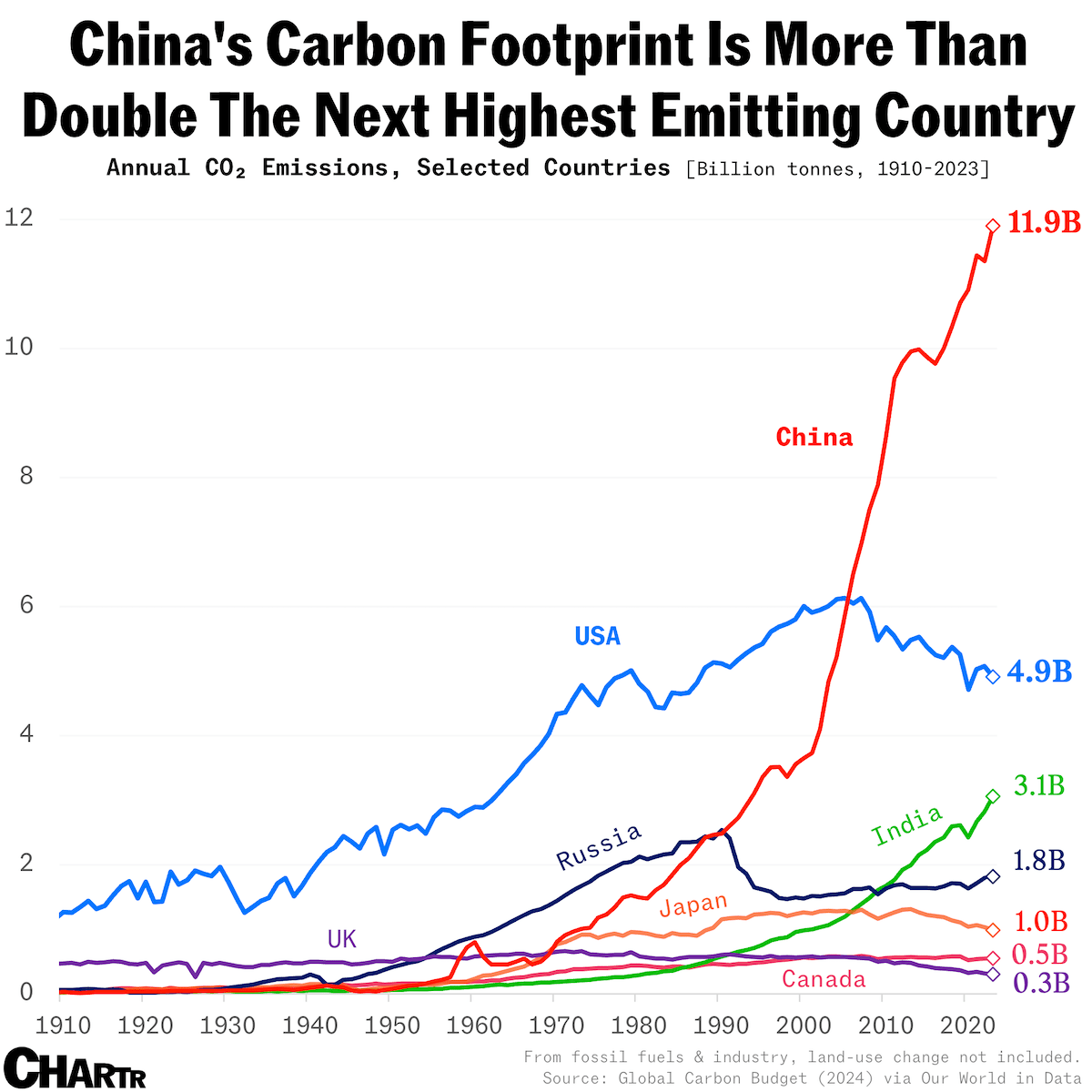 From a global perspective, China’s commitment is pivotal. The country produced a massive 11.9 billion tonnes of carbon emissions in 2023, per data from the Global Carbon Budget — more than the next five top carbon-polluting nations combined. |