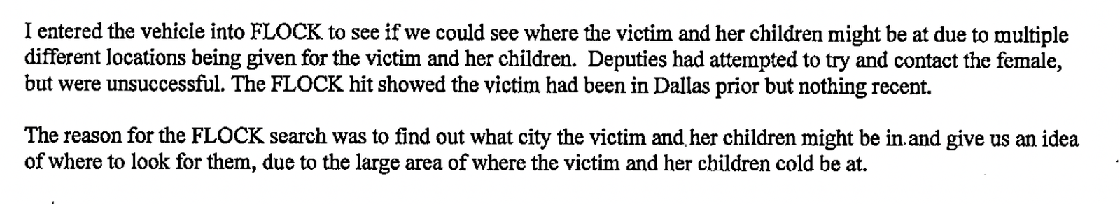 In documents created prior to the publication of our article, there is zero mention of concern about the woman’s safety. The records show that the police retroactively created a separate document about the Flock search a week after our article was published, in which they justify the search by saying they were concerned for her safety. 404 Media’s initial reporting on the incident became national news, has been cited in several government investigations into how Flock is used by police, and has led to several reforms by Flock itself. The company and its CEO, Garrett Langley, have repeatedly used it as a high-profile example of an ‘activist’ media that is biased against his company. The documents show that the narrative pushed by the Johnson County Sheriff’s Office and repeated by Flock is not the full story, and that police did consider charging the woman with a crime.  “For months, Flock Safety and the Johnson County Sheriff insisted that she was being searched for as a missing person and accused journalists and advocates of spreading 'clickbait' misinformation,” Rin Alajaji, legislative activist at the EFF, told 404 Media. “Now we have the official records, and they prove the exact opposite: Texas deputies did investigate this woman's abortion as a ‘death investigation,’ they did use Flock Safety’s ALPR network to track her down, and they did consult prosecutors about charging her. The only misinformation came from the company and the sheriff trying to cover their tracks. We’ve warned about this for over a decade now: when a single search can access more than 83,000 cameras across nearly the entire country, the potential for abuse is enormous. This makes it crystal clear that neither the companies profiting from this technology nor the agencies deploying it can be trusted to tell the full story about how it's being used.” The documents highlight how Flock, whose cameras are installed in thousands of communities around the country, and which 404 Media has revealed police use on behalf of ICE, ultimately may not know what its customers are using the technology for. Flock declined to comment for this article.