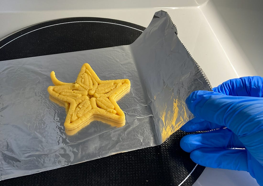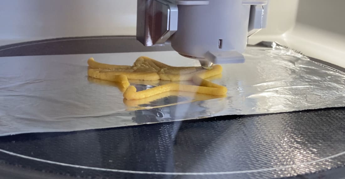 Jason Toon here, back from a visit to the future with another Shoddy Goods, the newsletter from Meh about consumer culture. Spoiler: tomorrow looks a lot like today. And in this case, it smells like oranges. When I told people I was going to watch some food being 3D-printed, they reacted as if I’d said I was going to have a cybernetic eye installed. They seemed to be picturing a pinkish-brown clump of cultured cells, oozing a liquid that is both blood and not-blood. I sensed a touch of discomfort, an uneasiness at the awful wonder of the swiftly arriving future. But it doesn’t feel like that in this 10th-floor laboratory at the Royal Melbourne Institute of Technology (RMIT). The substance being extruded by the Natural Machines Foodini isn’t some genetic soup; it’s a slightly experimental cookie dough. It isn’t being squeezed into a wad of quivering neo-meat, but into a star-shaped cookie like Grandma might make. After a few minutes of watching, it seems as exotic as the tile-roofed Australian suburbia stretching out below us. Which is to say, downright normal. This never happens when I put cookie dough in my HP printer at home “It wouldn’t even extrude” This team of Food Science grad students is looking at the feasibility of two practices: industrial 3D-printed cookie production, and the reuse of orange peels discarded from a local juicing facility and turned into powder. Both have potential sustainability benefits. “So you’re revalorizing the (orange peel) waste,” says Dr. Arianna Dick of RMIT, the academic supervisor of the project, who Shoddy Goods readers may remember from our search for sugar-free candy bars, “and at the same time the 3D printer itself is a sustainable technology. Compared to molds that you would use at the industrial level to create similar shapes, a 3D printer uses the exact amount. So it will only deposit the amount needed for the shape, whereas in molding, you need to cut whatever is left outside of the mold.” We bring up some 3D models on the operating touchscreen of the Foodini, a countertop 3D printer about the size of the first microwave my family had in the ‘80s. Some of the models come pre-loaded, some were created by this team, and some are shared by a community of 3D food printers. The Foodini in a totally normal kitchen with multiple baskets of apples The project initially tested three different doughs - one with 5% powdered orange peel, one with 10%, and one with 20% - against a control dough with none. But now it’s down to two test subjects. “The 20% one wasn’t even able to print because of how thick the powder made it,” says Master’s candidate Aloys Duhamel. “Thick and dry, yeah,” agrees fellow grad student Prayush Agarwal. “It wouldn’t even extrude out of the nozzle.” If you’re ever worried that the future’s coming at you too fast, just remember: even the most cutting-edge technology can still be clogged up by overly thick cookie dough. Duhamel loads some of the 5% mixture - “our favorite,” says lab supervisor Dr. Uzma Sadiq - into the Foodini’s capsule, chooses a star design, tweaks a few other settings, and hits “print”. Off it goes, laying down lines of dough into the (not extremely fine, it must be said) shape of a star. The delightful whiff of orange zest hangs in the air. It’s almost homey, a far cry from the sci-fi vibe of 3D-printed steaks. This is just one of hundreds of 3D-printed food experiments happening around the world at any given moment. The small, incremental benefits of processes like this won’t make breathless headlines. But in aggregate, they’re more likely to drive the spread of 3D food printers than those futuristic moonshots. Meal delivery in space? If it seems like 3D food printing at this point is more about aesthetics than sustenance, Dr. Dick reminds me that when it comes to food, the two are inseparable. She cites the work of a company like Gastronology: for dysphagic patients who can only swallow soft foods, giving that food an appealing color, shape, and texture isn’t trivial. 3D printing can also address the social-connection aspects of food for people in space and other isolated environments. As a 2024 report in the journal Life Sciences in Space Research puts it: “In such long-duration human-crewed space missions, under microgravity conditions and exposure to space, psychological factors heavily affect food consumption patterns. Therefore, there has been a surge in research funding for developing products and methods that offer safe, nutritionally balanced, and delightful food options. 3D food printing could be a creative solution for such requirements.” Dr. Dick cites “space-ready meals” as another growing area of study. “Maybe someone can, from Earth, send a (meal as a) message to a person in space” as a form of sharing a familiar dinner together, she says, adding that an upcoming experiment by an RMIT student will be examining that possibility. Personalized food is another emerging frontier; after all, not everyone’s nutritional needs are the same. “Another interesting thing is coupling the printer to software where you can tell the software, this is my activity today, this is the energy,” Dr. Dick says. “It will calculate how many calories you need and different nutrients. And based on that, it can propose a snack or something like that.” Do not consume entire stack in one bite If the industrial applications of 3D food printing are still in the exploratory stages, that goes double for its use in the home. While models like the Foodini are intended for both home and commercial use, Dr. Dick says they cost too much and can do too little to be a winning proposition for consumers - yet. “Several design, price, and functionality thresholds must be met,” she says. “They must be highly user-friendly, with intuitive operation, minimal setup, and the ability to handle a variety of food materials without frequent adjustments 