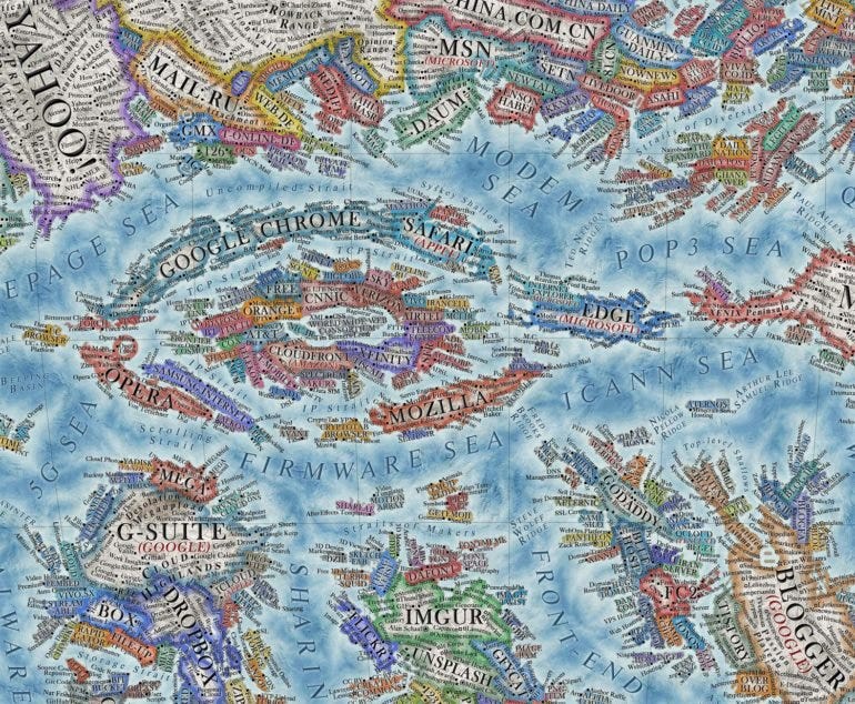(And presumably if that were true, around that back & those shoulders you’d also see a cumulative picture emerge as that light continued to circle the world, seven rotations a second. This is…probably best not thought about for very long. Our minds aren’t designed that way.) But the biggest optical illusions can only be seen with space telescopes - the ones that point outwards, into a universe so befuddling that humanity should be scared to look. Take the truly barmy cosmic mirage known as gravitational lensing, where the light from a single object twists as it passes a source of gravity strong enough to bend it. Here’s the most perfect example I’ve seen: This eye-like object is actually two galaxies, one far behind the other. The red one in the centre is nearest - and as the light rays from the more distant blue galaxy (which by a fluke is almost exactly behind the red one from our perspective) pass it on all sides, they all get bent inwards towards us. The result looks to us like a ghostly horseshoe - but that’s really just a single dot of blue light being stretched in ways that are almost too fantastical to comprehend. All of this is backed up by hard science. That doesn’t mean it’s the certain truth, of course (good science isn’t dogmatic), but it does mean it’s been challenged from all sorts of directions by all sorts of clever people, and what’s left is their best hypothesis about what’s actually out there… And what’s out there looks absolutely wild. (Nobody should ever accuse scientists of lacking imagination. Especially cosmologists. If the Olympics had an event called Conceptual Gymnastics, cosmologists would have cabinets at home stuffed with gold medals.) This is why optical illusions were the focus for season 3 of this newsletter. Not just because they’re amazing to look at (and then some), and not just because I’m a science nerd (and then some) - but because curiosity frequently requires the suspension and delay of disbelief in order to truly flourish. Yes, you are seeing this, even if it looks absolutely impossible. No, you don’t know what the hell you’re looking at. (And right now that’s a feature, not a bug.) And yes, this is a weird state of mind to be in, in a world that prides itself on certainty and knowing and finding answers instead of sitting with questions. As I hope to show you again and again, the world is frequently a lot stranger than it looks - and as you’ll see, it looks pretty damn strange indeed when you pay close attention to it. And as I said previously: “Isn’t that the joy of optical illusions, that they can pull the rug away from you like that? How often does that happen in life? Isn’t it a thrill?” Prepare yourself for a lot of rug-pulling. (And a lot of cool pictures.) If that has your head spinning, I have a paywalled piece that asks the surprisingly tricky question Hey, what does the Internet actually look like? If you’re interested in reading it, and everything else in my archives, it’s a good time to upgrade - because right now, all paid subscriptions to Everything Is Amazing are 10% off. In doing so, you’re also helping me keep this project running. I don’t run ads, I don’t have sponsors, nothing but the kind support of EiA’s 820+ paid supporters - which keeps me accountable to them (and you) alone. So if you’ve enjoyed any part of Everything Is Amazing and want to see it grow and get more ambitious/reckless/weird, an upgrade at any level is the best way to help me keep this thing alive. Click below to sign up with a 10% discount: Thank you! Images: Anchorage Daily News; NASA/Mila Zinkova; Ludovica Lorenzelli, DensityDesign Research Lab/Wikimedia; Joe LaCour/Earth Sciences Picture Of The Day; ESA/Hubble & NASA; Stephen Crowley; Tomas Eidsvold. |