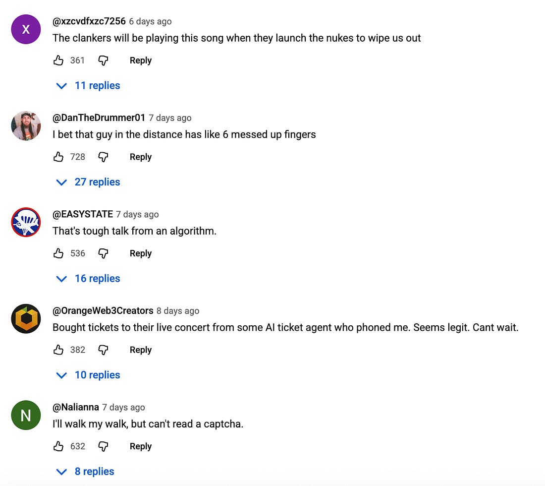 One of the more perplexing things about the AI bubble is how relatively little we have to show for it. Mostly, it’s chatbots, some coding automation, and slop. A lot of slop. You can spend hours reading through eye-popping Nividia earnings reports and lengthy columns expounding on the transformative powers of the technology and analysts’ takes on what may be the biggest bubble of our generation. That’s to say nothing of the breathless proclamations of tech executives, of course, or the federal government’s own enthusiastic overtures. But then you flip on Saturday Night Live and the first sketch they run after the monologue reminds you that a lot of the general public’s experience of AI is actually more like the one depicted here: That is, as slop. Encountering awful AI slop (and startups with skin-crawling pitches like ‘what if we use AI to reanimate dead family members’), is an experience universal enough that Glen Powell acting out Sora-esque output gets top billing at SNL. Slop has broken through; slop is everywhere; slop is mainstream. And it’s not just that everyone, regardless of demographic, has watched a discomfiting AI-generated video or heard about a bad AI startup. AI slop is on TV ads, it’s in video games, it’s on the pop charts. There is a tangible, tactile, and unavoidable slop layer that has encrusted pop culture and much of modern life. If the slop explosion began in earnest in 2023, with the unleashing of ChatGPT and Midjourney, and it reached critical mass in 2024, then now, in 2025, we’re seeing that slop hardening into the outer shells of our cultural institutions and social spheres, like a layer of so much automata-inflected sedimentary rock. And I’m not one to pass up a metaphor, so let’s go all in why don’t we. Remember middle school geology? The US Geological Survey notes that sedimentary rock is “formed from pre-existing rocks or,” like slop, “pieces of once-living organisms.” The USGS also helpfully notes that sedimentary rocks have “distinctive layering or bedding.” You know it when you see it. Now, in 2025, whenever we go to read a blog, flip on the TV, stream music, or pick up a PS5 controller, we are likely to encounter the slop layer. This agglomeration of content living and dead, marked by a faintly unpleasant aesthetic homogeneity, that evokes in us a weary inability to discern what’s real and what’s not. We wade through this tide of automated mediocrities and the ethical breaches they represent and consider the credibility of its component parts. Whether we want to or not, and mostly we do not, we must engage the slop layer. A quick word before we go on: Instead of the usual entreaty to subscribe or to become a paid subscriber if you enjoy or find value from this work—which will continue to constitute oh 97% of my livelihood, and please do that if possible—I’m trying something new. That is, this is a sponsored post, from a good company offering a good service. As you read this, or rather, immediately before you read this, when you were on Google or Facebook, browsing or shopping etc online, a host of mostly invisible companies were compiling data profiles of you. Today’s edition of BITM is sponsored by DeleteMe, whose raison d’etre is hunting down and, yes, deleting the data that brokers have hoovered up about you over the years and made available to their clients. DeleteMe is Wirecutter’s top-rated data removal service, and I’ve used it myself, to locate and eradicate 100 or so sites that were listing and selling personal info like my home address and phone number. If you’re interested in taking DeleteMe for a spin, sign up here and use the code LUDDITES for 20% off an annual subscription. OK! Onwards we go. The slop economy has been going full steam for a year or two now. In 2023, 404 Media’s Jason Koebler wrote in a report about the rise of AI content on Facebook that the “once-prophesized future where cheap, AI-generated trash content floods out the hard work of real humans is already here.” In 2024, Max Read declared that the slop era had arrived. Pumped out primarily by content farmers, web marketing opportunists and AI boosters, the flood of slop was, for a while, largely contained within social media platforms, email spam filters, and clickbait websites. Now, those walls are being breached. OpenAI’s launch of the AI video generator Sora 2 made slop easier than ever to produce; major copyrights holders sounded the alarm. Taylor Lorenz called it the AI Slop-pocalypse. Then, last week, an AI-generated country music song by “Breaking Rust” notched the top spot on a(n admittedly obscure) Billboard chart (Digital Country Music Song Sales), and has racked up millions upon millions of views on Spotify. It’s a generic, pretty terrible song that’s nonetheless not too out of step with the performatively masculine/hip hop-inflected/uncomfortably Imagine Dragon-adjacent trendlines in modern country pop. Once you hear it as slop, it’s impossible to unhear it as such. The top-voted comments on YouTube seem to agree: The song gained popularity on Spotify, where it seems to have been recommended by the algorithm in Discover Weekly mixes, and where it was likely nodded along to in anonymity by millions who didn’t know or care who was behind the song. (This being a reminder that platform consolidation, and the social media networks and streaming services that want for cheap, voluminous content, produced the ideal conditions for generating the slop layer.) So it’s not like the song is an actual hit, it just blends unnervingly into the background, condensing the work of unnamed human recording artists into inoffensive, key-appropriate pap. It’s part of the slop layer. The same week that Breaking Rust was racking up Spotify plays, gamers were discovering that the newest installment of the blockbuster video game franchise Call of Duty was loaded with AI-generated art. The games blog FRV