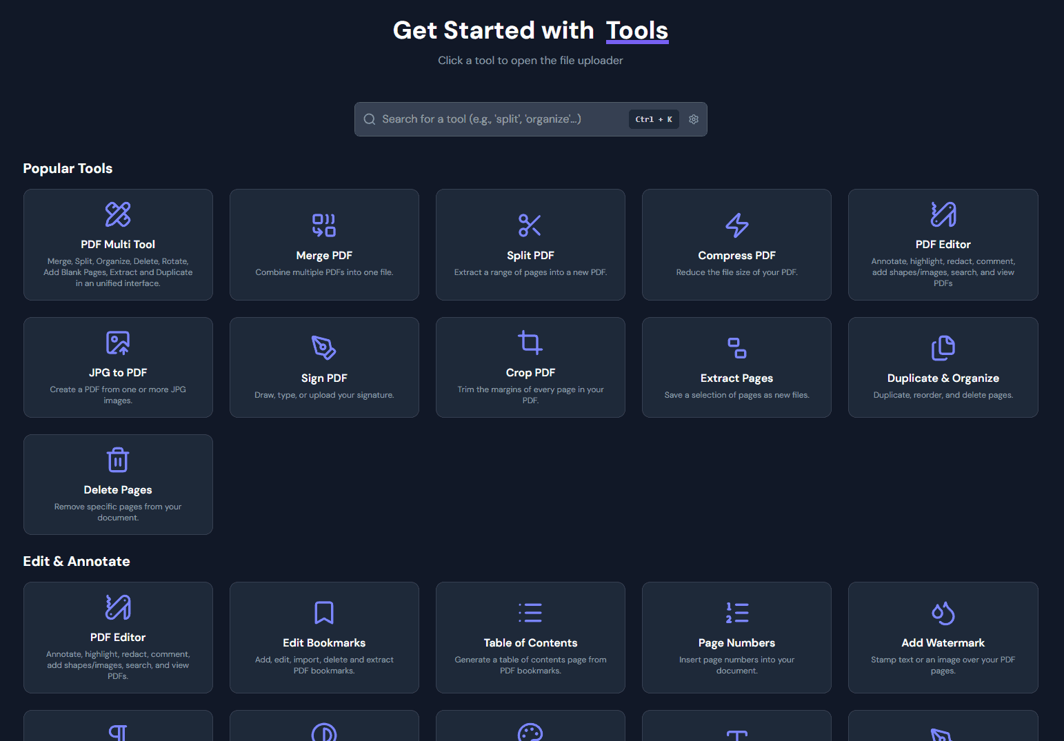 Content SpotlightMeet BentoPDF, a web-based PDF toolkit for editing PDF files directly from the browser. With BentoPDF, users can securely perform one of many file operations on their PDF file(s) without any data ever leaving their local machine (everything happens client-side). Tool categories include organization (merge, split, etc.), editing/modification (including fillable forms), conversions to/from other file formats, security, and optimization (compress, remove metadata, etc.). BentoPDF can be easily deployed via Docker or bare metal and doesn't require any additional external resources to run.