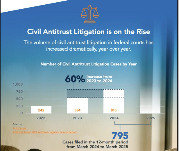 So those are some of the major areas of improvement. What has worsened in terms of the law itself? I don’t mean enforcement policy, which we’ll get to, I mean the actual rules by which our society is supposed to be ordered. And there are some important setbacks. Consumer Financial Protection Bureau: Federal consumer protection around finance is mostly gone, and attempts to oversee big tech’s move into payments are over. It’s hard to overstate the importance here, most provisions against fraud, theft, deception, and unfair practices will now go unenforced by the Federal government among banks, credit bureaus, payday lenders, fintech, and crypto firms. Algorithmic Price Fixing: Last week, the Trump administration settled a case with alleged rent-fixing software firm RealPage. Immediately afterwards, the company sued to block a New York state law prohibiting price coordination, saying it’s a violation of the First Amendment. This one’s a rollback, and has policy implications on algorithmic price fixing across the economy. Monopolization Remedy Law: There are two parts to the law against monopolization. The first is whether a company is liable for monopolization, the second is what to do about it. While monopolization law itself is better, the remedy part is not. Judge Amit Mehta ruled that Google is an illegal monopolist (good), but also ruled that it’s too costly to actually remedy that monopoly (bad). That has the potential to corrupt the remedy process of the Sherman Act. Competition Executive Order: In 2021, the Biden administration created a competition council to encourage anti-monopoly work across the administration, and inside the White House. Trump withdrew it, and his economists are actively trying to meddle in the Antitrust Division’s work. Another rollback. Non-compete law: While the law is better than it was, the Trump FTC is trying to avoid appealing the decision setting aside the rule against noncompetes.