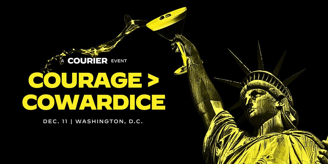 Special Offer for COURIER’s Courage>Cowardice on Dec 11Cyber Week Only: Free general admission tickets with the below codeHi all! Thanks for being a member of our FWIW community. COURIER’s Courage > Cowardice end-of-year-soirée is almost here and for a limited time, we are offering free general admission tickets when you use the code CYBERWEEK2025 at checkout. Thursday, December 116:00 - 7:30PMBeverly Snow at Eaton DC We’re bringing together organizers, journalists, creators, and movement leaders who are rebuilding power and pushing back against extremism every day, including Yasmin Radjy, Meredith Lynch, Andrea Chalupa, Jack Cocchiarella, Brian Beutler, Rashad Robinson, Nourbese Flint, and Melissa Morales. From movement building to media courage, these conversations will go deep into what it takes to meet this moment — and what comes next. Food, drinks, and an open-bar cocktail party are included, so come raise a glass with COURIER as we close out 2025. Our Cyber Week special is limited, so get your tickets today. Not in DC? Please forward this invite to anyone who might be interested. Your support fuels COURIERThis holiday season, you can help power courageous journalism that never bows down to MAGA or pre-complies — one t-shirt, mug, bag or sticker at a time. Shop now to support fearless, factual journalism. Enter COURIER10 at checkout to get 10% off |
