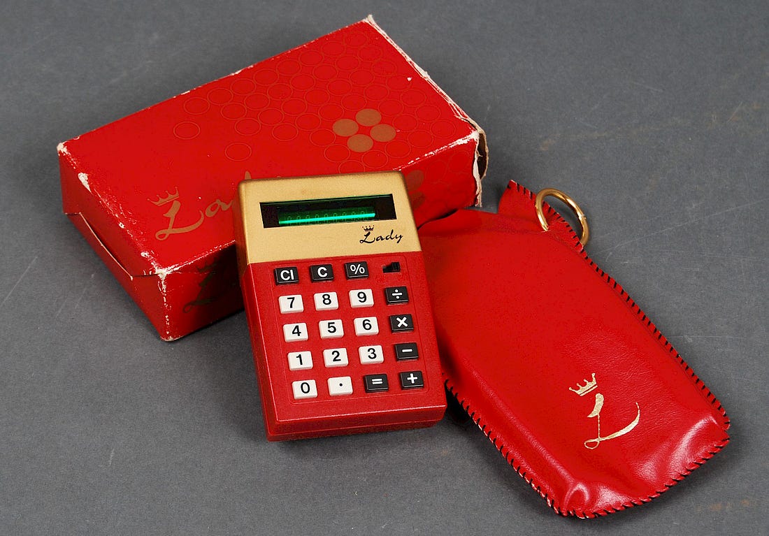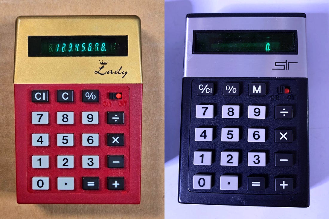 Hey, Jason Toon here, with another Shoddy Goods, the newsletter from Meh about consumer culture. It’s easy to make fun of clueless “for her” versions of genderless products. So I will! If anything is ungendered, you’d think math would be. The square root of 144 is always 12, whatever your particular chromosomal arrangement. Anything multiplied by 1 still equals itself, no matter where that self defines its place on the gender spectrum. A major business technology concern like Adler should know that. You don’t go from a humble bicycle manufacturer to the world’s sixth-largest manufacturer of office machines if you don’t understand numbers. And yet, in 1975, that didn’t stop them from marketing a pocket calculator “for women”. Press the ladybuttons to enter ladynumbers and ladycalculate the ladymath “Designed for milady” “The chic, boutique calculator designed specially for women,” ran the ads that started appearing in fall of that year. “The Litton/Adler ‘Lady’ is the only electronic calculator specifically designed for milady.” [shudder] You can feel the ad tipping its fedora. “Ruby red and gold tone create a truly striking conversation piece… slips easily into the smallest purse.” A Mother’s Day campaign the following year calls the Lady “the electronic calculator that recognizes there’s a difference between men and women… a daring departure from drab black and white… tinier than a regular size pack of cigarettes.” The ad copy goes on to helpfully reminds the fairer sex of all that mean old math that the Lady could help with: “it’s ideal for check book balancing, preparing tax returns, supermarket shopping.” If Barbie and Ken were rudimentary computers Lest anyone suspect Adler of white-knighting for the gals, they came up with a little something for the fellas, too: the Sir, a masculine companion in non-nonsense silver and black… meaning it looks like a regular old non-gender-specific calculator, if a bit ahead of its time. If there’s anything sillier than a calculator for women, it’s a calculator for men. Each one came with its own little leather carrying case: a soft scarlet pouch with a gold keyring for the Lady, a rugged black wallet for the Sir. Hmm, you know, the barricade of a thin layer of leather could be a pretty good way to discourage you from compulsively looking at your phone. [adds note to “Million-Dollar Ideas” file] Tron vs. Barbarella Here’s the thing: the Lady is indeed a “striking” piece of ‘70s industrial design. The deep red and gold color scheme really pops, of course. But the subtle form factor differences are distinctive, too. Where the Sir is all right angles, the Lady tapers toward the ends to form a gently irregular hexagon, with more rounded top corners. The Sir’s design was also pretty bold for 1975. Where it foreshadows ‘80s aesthetics, the Lady hangs on to more of a late-’60s, early-’70s retro-future vibe. The Sir is Tron and Battlestar Galactica while the Lady is 2001 and Barbarella. None of which, of course, has anything to do with gender. At least the Adler boys had the restraint not to spell out 5318008 on the screen Predictably, the gendered marketing of these two pretty neat little calculators didn’t do them any favors. There’s a fine line between targeting your audience and limiting your audience. As with the Bic for Her fiasco 37 years later, if the manufacturer had just rolled out these new designs sans sexual designations and let the public make up their own minds about who they were “for”, they probably would’ve sold better. Or at least, not any worse. By 1977, Adler stopped marketing both the Lady and the Sir. They’re remembered fondly by vintage calculator enthusiasts. Both pop up on eBay and Etsy regularly, especially the Lady; you can probably land one for $20-$30, depending on condition. The Lady in Red Looking back from 50 years later, what strikes me is how little the Lady’s design would read as “for her” today. Even if feminine product design has evolved beyond cliched pink and purple pastels and flowing curves (looking at you again, Bic for Her), the dominant mood of women-coded products could still be summed up as “calm”. The Lady’s brassy colors and harder edges are much more in-your-face. Maybe the Lady wasn’t “feminine” because of the particular aesthetic as much as the presence of any aesthetic sense at all. I guess a male calculator operator must be too busy conducting serious business to fool around with fripperies like vivid colors and stylized lettering. Or maybe trying to pin down his-and-hers style is inherently doomed to be inexact and quickly dated, because visual indicators of gender change across different times and places. Unlike, you know, math. I’m secure enough in my masculinity to admit this calculator set is freaking badass I love the Japanese snack Pocky sticks in all their flavors, but I’ve always been mystified that there’s a Pocky for Men…flavor. Have you seen any other weird “for men” or “for women” type of products that make no sense other than some marketer thinking they have a cheap way to increase sales? Let’s talk about ‘em in this week’s Shoddy Goods chat. You don’t have to own any particular equipment to enjoy these gender-neutral Shoddy Goods stories: |