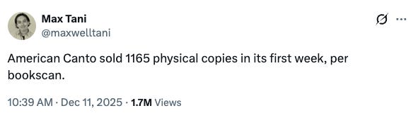 Tran’s piece encapsulates what feels to me like an interesting shift for Asian America in particular (which was always more of an Idea of a Demographic rather than any kind of cohesive demographic itself), which has spent the last decade or two successfully assembling itself as a discrete cultural product, in place of anything politically meaningful. For so long, the subtextual appeal of Asian America’s ploy for more power in a pluralist society was in the insistence on its Americanness first (Rachel Chu is just like u and me!!!); with the arrival of Chinesemaxxing (which as Tran notes, follows the modern “trendiness” of Japanese-ness and Korean-ness exports in mainstream as well), cultural fluency in the Asian half of the descriptor appears to hold more potency on a global, or at least internetized stage. To that point: A friend recently joked that it wasn’t “cool” to be one of the “obvious” Asians anymore; if nicheness is now the prize, even in the realm of identity, the Cambodiamaxxers, for example, stand to win big. Finally, you probably already heard, but…lol: The Ministry of Words is a teaching collective offering courses in fiction, nonfiction, and poetry. Fatimah Asghar, Ingrid Rojas Contreras, and R. O. Kwon are widely acclaimed, award-winning writers and teachers. The classes will each be four months long, and will start 2/4—the first spring semester will focus on generating work, and the fall semester will be workshop-based (with help, for those who want it, on working toward publication). The application deadline is 1/20. You can sign up for one or both, and there are limited partial scholarships for writers of color. The Ministry of Words will offer cross-disciplinary lectures open to all participants, as well as space for shared online writing sessions that bring together all 3 classes on the weeks they’re not meeting. By putting this together, Asghar, Rojas Contreras, and Kwon wanted to create a structured place outside of academia for people to work on their writing and craft, a place that’s nurturing and community-fostering and generally supportive and fun. If you have any questions, they’d love to hear from you. Thank you for supporting Deez Links! For classified advertising + sponsorships, lmk at delia@deezlinks.com |