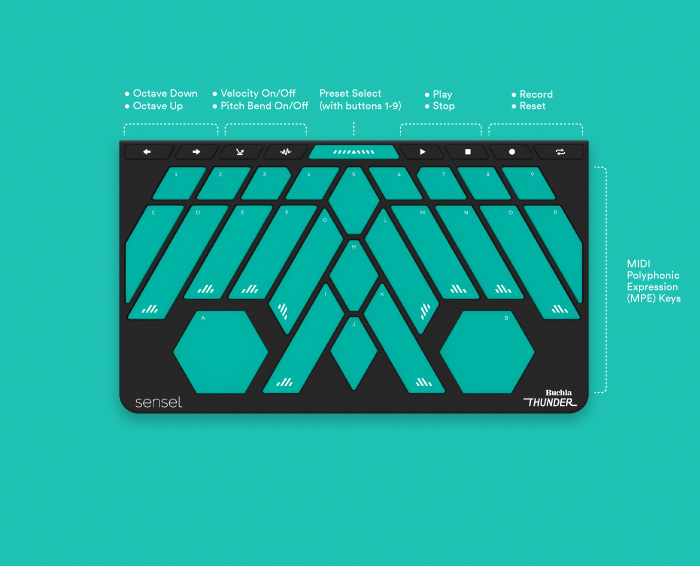 The last included overlay is where this keyboard shines the most, splitting itself between regular keys and a more freeform scene that seemingly eschews the rigid sensor grid underneath – although upon close inspection, you can spot little stars to guide the fingers toward one of the 717 spots.