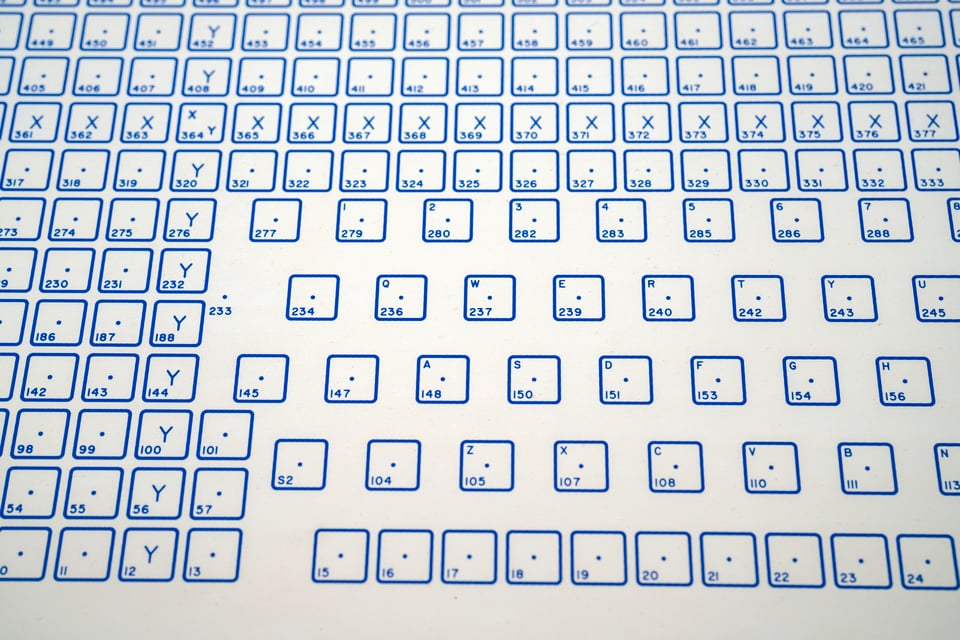 There are also functions and formats and common punctuation, and everything is grouped spatially in various ways. Turns out, if you start with 717 sensors, you can sacrifice a lot of them – counting the actual keys will tell you that this particular overlay has in the end only 287 of them.